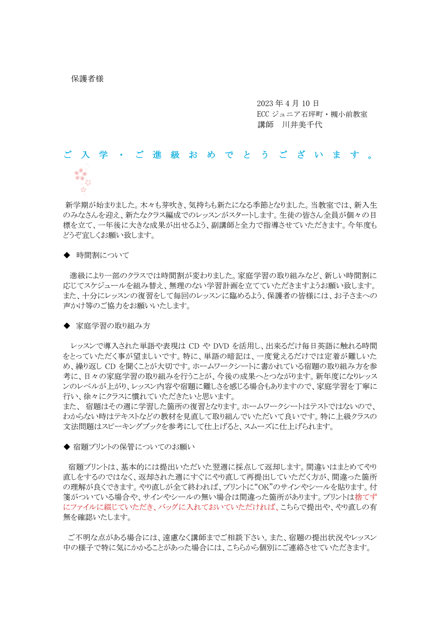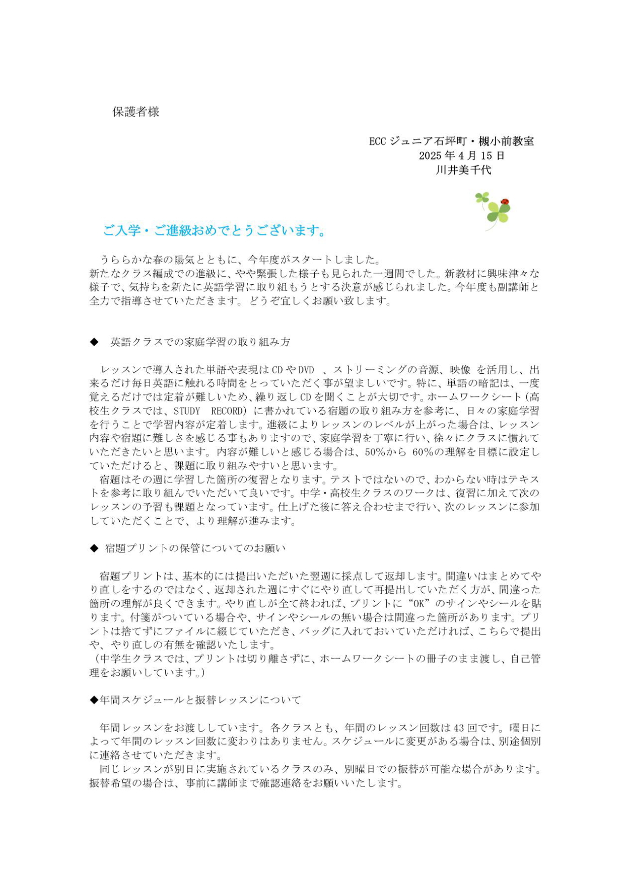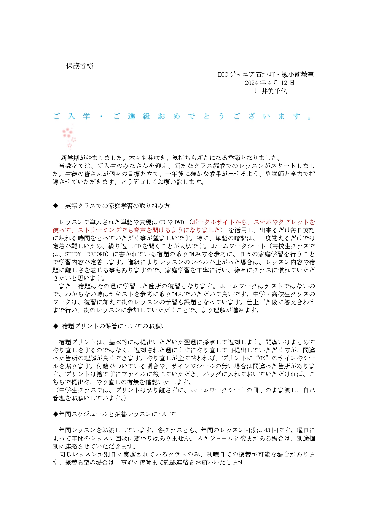 6月号・ECC ジュニア石坪町教室 懇談会のご案内